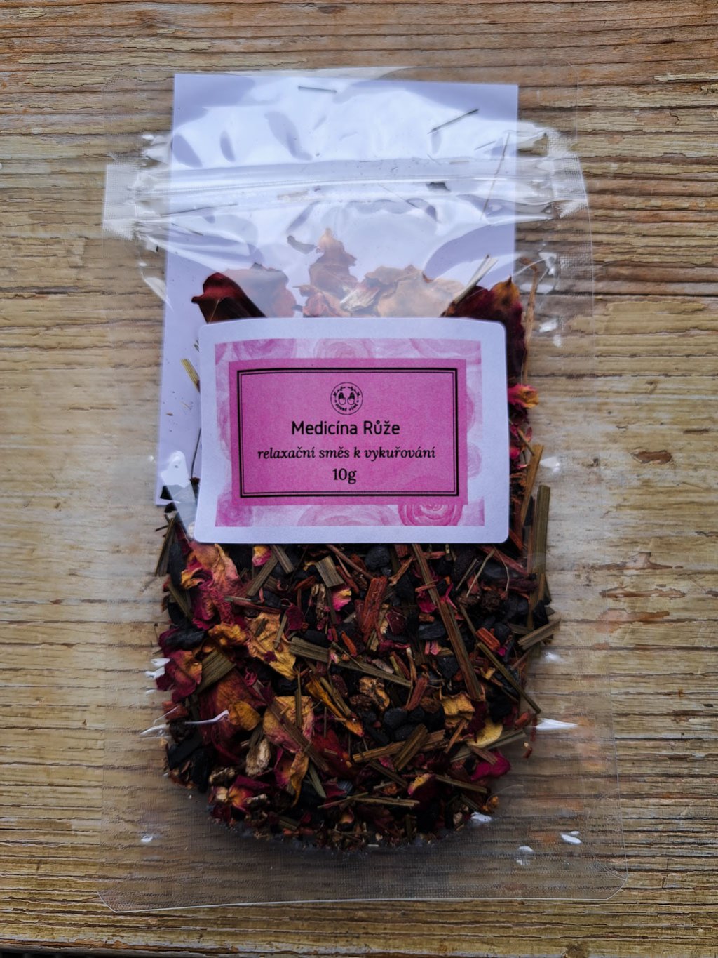 Tato směs vznikala dlouho a zajímavě. Její složení navazuje posláním na cyklus seminářů Medicína Růže, které stále průběžně pořádám pro zájemce o otevřené srdce s pomocí vůní a rostlin.