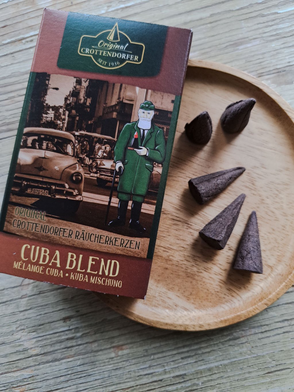 Velmi kvalitní vonné jehlánky pochází z tradiční německé manufaktury Original Crottendorfer, kde je podle původních receptur vyrábí již přes sto let. Mají opravdu krásnou i zajímavou vůni založenou na tabákových tónech.